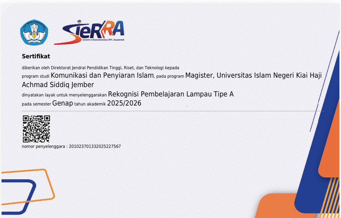 HUMAS- Tim S2 KPI Pascasarjana UIN KHAS Jember mengikuti kegiatan Public Hearing Implementasi PerBAN-PT Nomor 21 Tahun 2024 yang digelar oleh Dewan Pengurus Pusat Asosiasi Program Studi Komunikasi dan Penyiaran Islam (DPP ASKOPIS) melalui Zoom Meeting yang diikuti ketua jurusan/kaprodi KPI, baik jenjang S1, S2, maupun S3 di seluruh Indonesia, pada Kamis (07/11/2024). Agenda ini dinilai penting DPP ASKOPIS, karena berdasarkan PerBAN-PT tersebut, Prodi KPI termasuk bagian yang akan dilakukan oleh Lembaga Akreditasi Mandiri Sosial Politik Administrasi dan Komunikasi (LAMSPAK). Dengan demikian, kedepan, Prodi KPI tidak lagi diakreditasi oleh BAN-PT, tetapi mengikuti regulasi LAMSPAK.